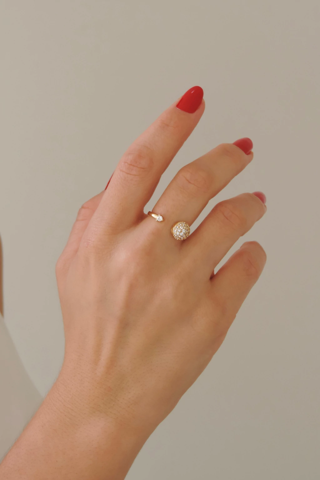 Descubra o toque contemporâneo do Anel Regulável Esfera Ponto de Luz, cravejado com zircônias em um acabamento sofisticado. O anel é ajustável de 16 a 23, proporcionando conforto e versatilidade para diferentes dedos. Feito em metal com folheado e banho flash, o design clássico de esfera com ponto de luz oferece brilho discreto para uso diário ou ocasiões especiais.