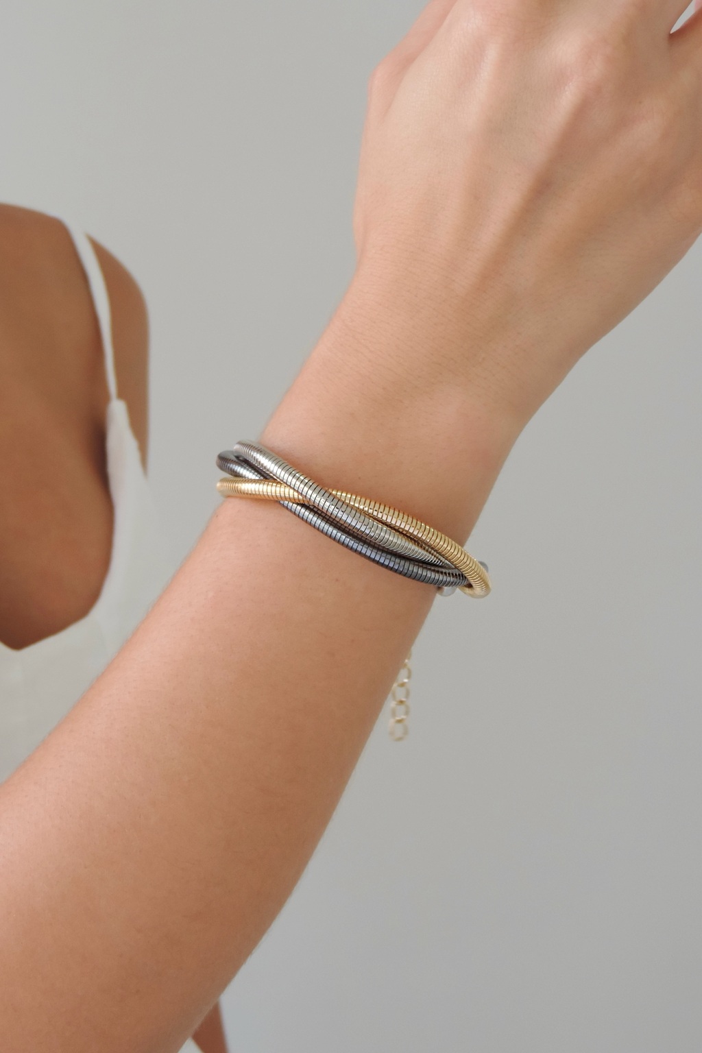 O Bracelete Fio de Violão traz um visual moderno. Feito em metal folheado, possui diâmetro de 5 cm e extensor de 5 cm, permitindo ajuste seguro e confortável em diferentes pulsos. Ideal para uso diário ou em composições em camadas.