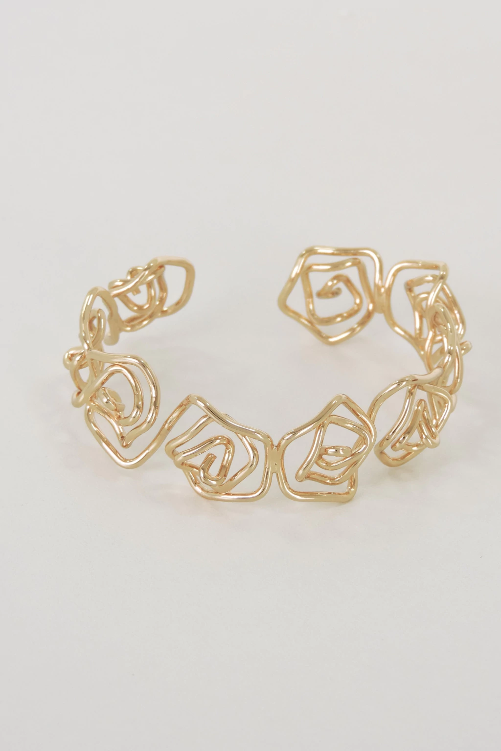 O Bracelete Flores Orgânicas apresenta um design inspirado em formas florais naturais, com regulagem para maior ajuste e conforto. Confeccionado em metal folheado, diâmetro de 6 cm e sem extensor, ideal para uso diário ou em composições em camadas.