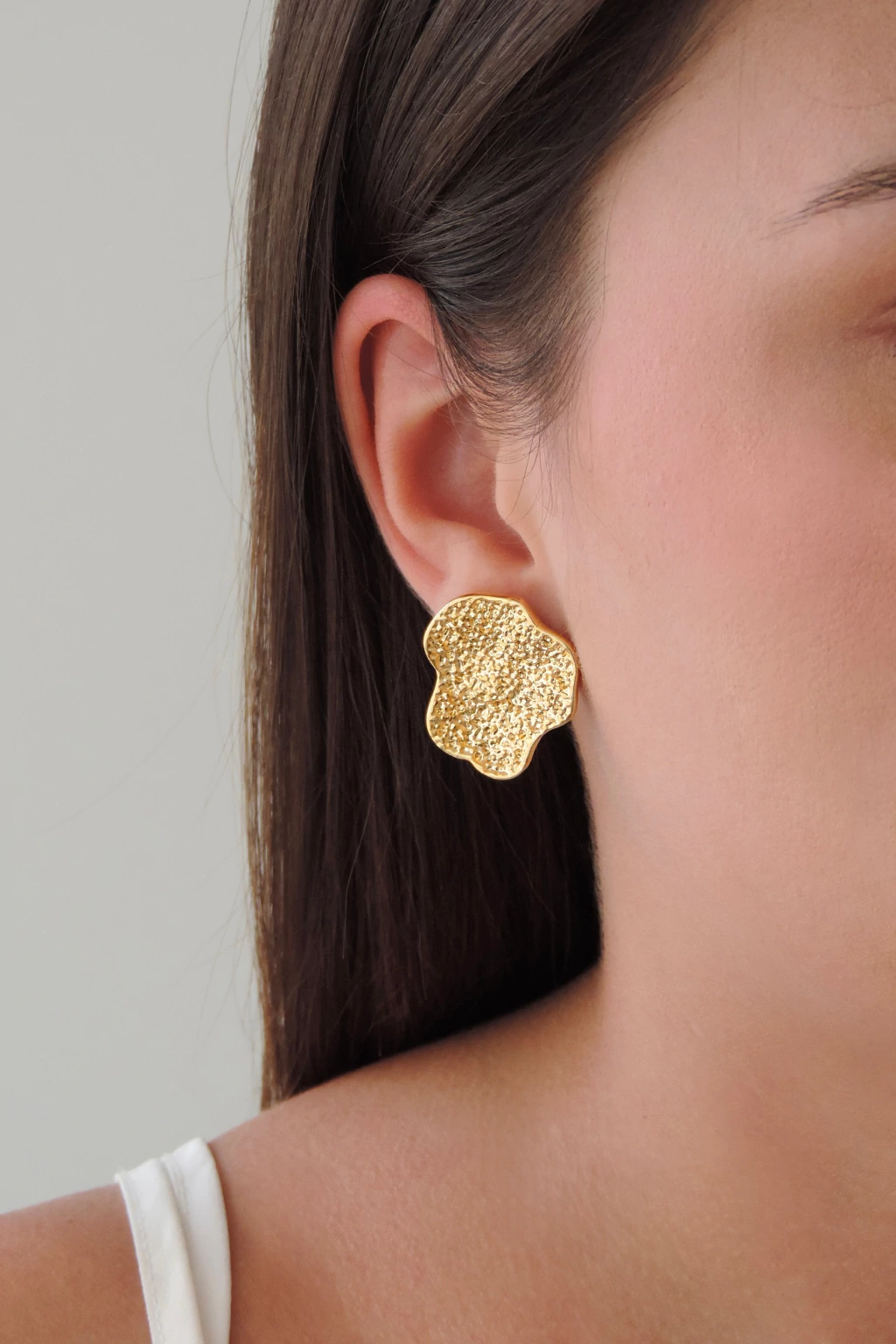 Descubra o Brinco Orgânico Texturizado — um acessório tradicional com acabamento texturizado e proteção em verniz. Ideal para quem busca elegância discreta com toque moderno, aliado a conforto no uso diário.