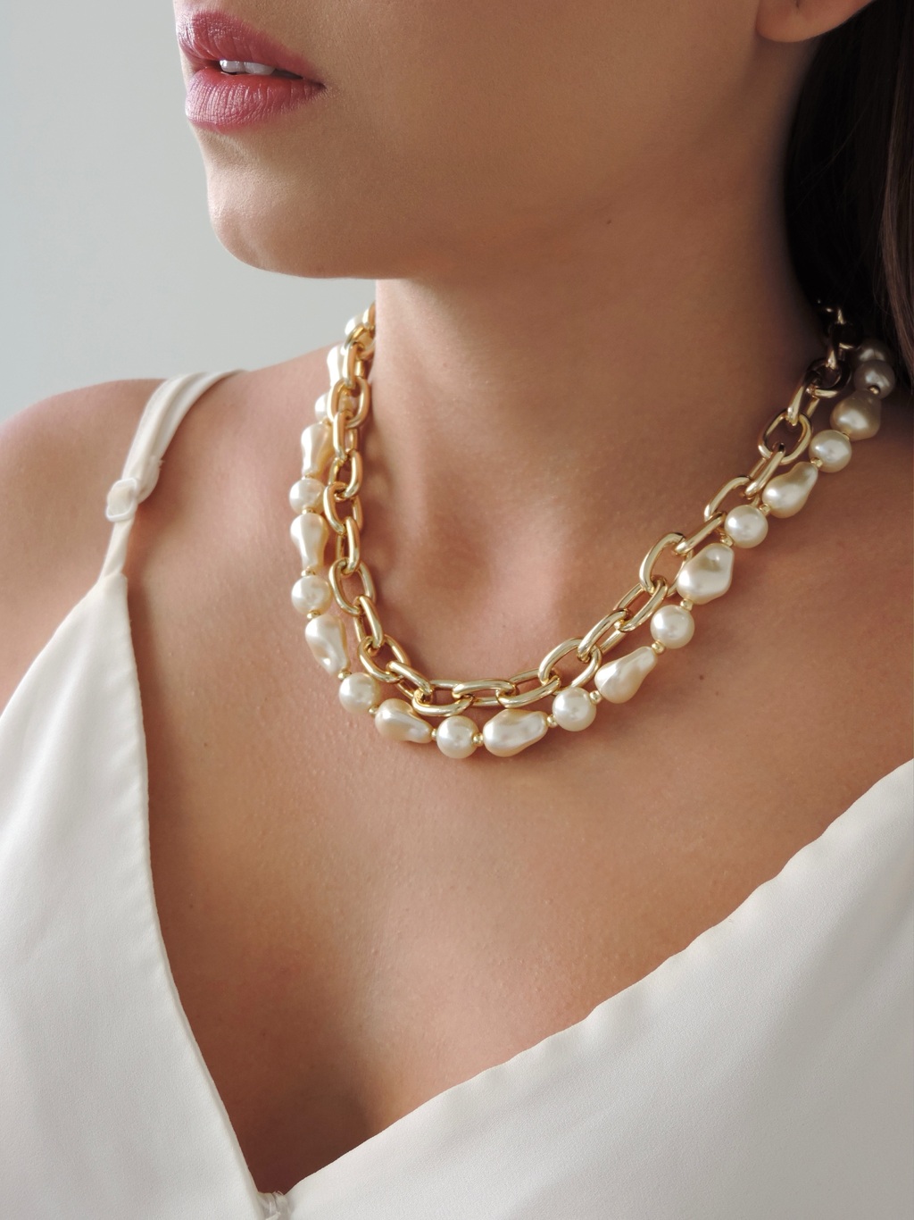 Adicione um toque de elegância ao seu visual com a chocker duplo de corrente e pérola. Confeccionado em metal folheado de alta qualidade, criando um visual sofisticado e contemporâneo. Perfeito para ocasiões especiais ou para elevar o look do dia a dia, a chocker dupla corrente e pérola é uma peça versátil que combina elegância e modernidade. Garanta já o seu e destaque sua personalidade com sofisticação.