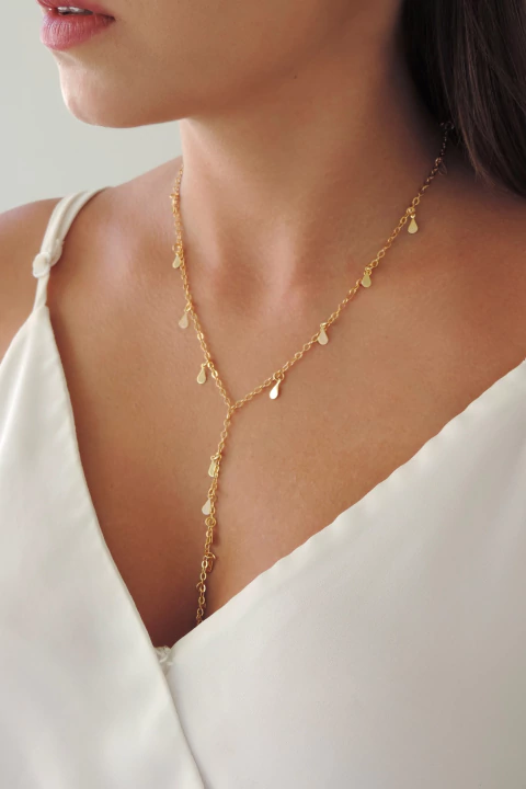 O Colar Gravatinha Medalhinhas é uma peça delicada em metal folheado, apresentando uma gravatinha com medalhas pequenas. Com comprimento de 41 cm e extensor de 8 cm, é regulável para ajustar ao decote desejado. Verniz de proteção proporciona brilho e durabilidade, tornando-o ideal para looks casuais e ocasiões especiais.