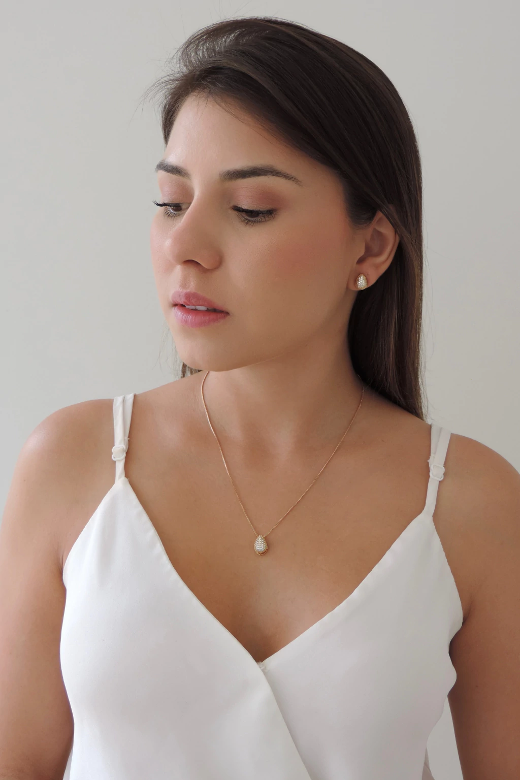 Complete seu visual com elegância usando o Conjunto Gota Cravejado, composto por um delicado colar e um brinco de tamanho pequeno. Perfeito para ocasiões especiais ou para dar um toque sofisticado ao dia a dia. O brinco possui altura de 1,2 cm e modelo tradicional, com tarraxa tipo sutiã para maior conforto. O colar tem comprimento de 43 cm, com extensor de 4,5 cm para ajuste perfeito, e pingente de gota (altura: 1,3 cm) cravejado com zircônias que brilham intensamente. Adquira já o Conjunto Gota Cravejado e realce sua beleza com uma peça elegante e cheia de brilho!