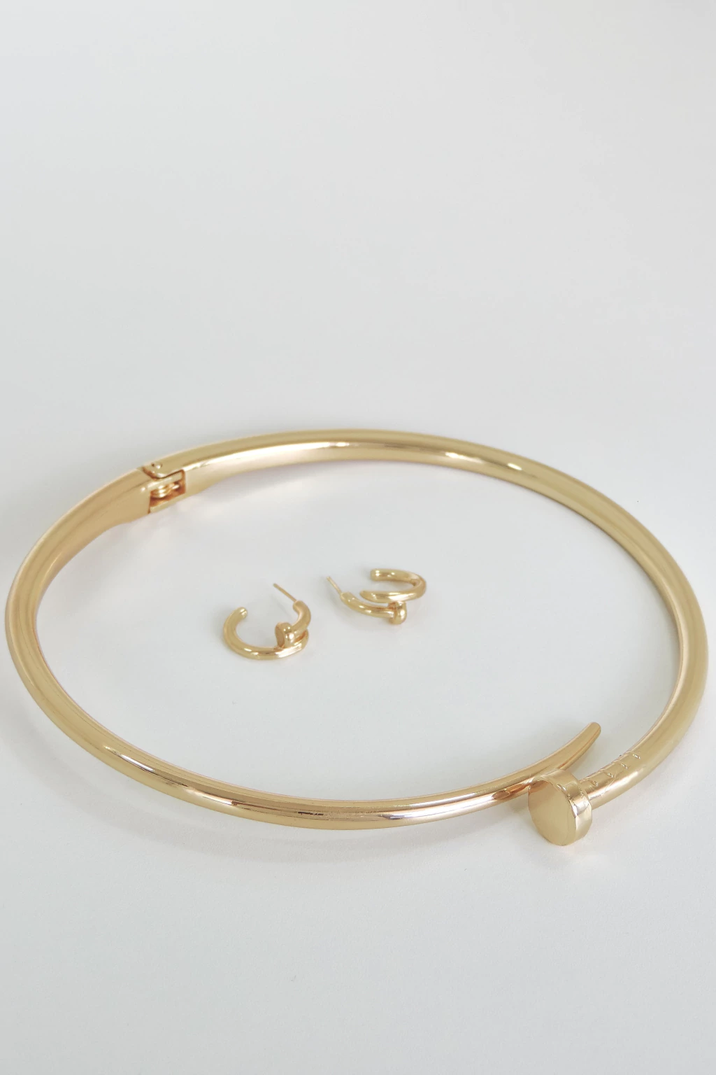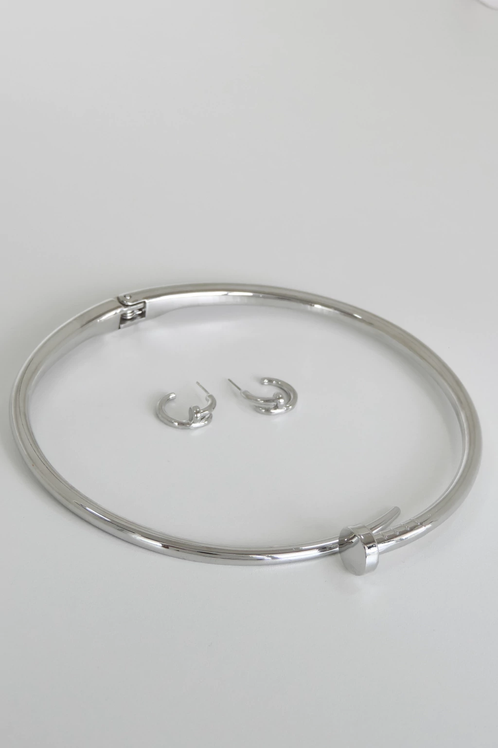 Descubra o estilo moderno do Conjunto Prego, composto por gargantilha elegante e brinco em formato de prego. Ideal para compor looks casuais e sofisticados, com acabamento que valoriza qualquer produção.