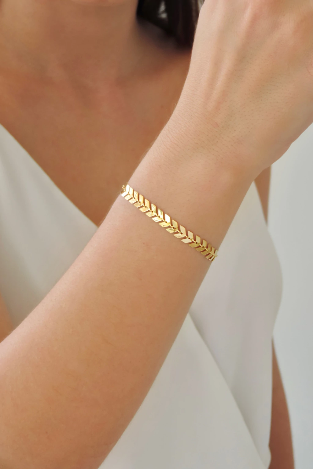 Pulseira folheada com design de folhas, comprimento total de 14 cm e extensor de 7 cm para ajuste. Modelo tradicional e regulável, ideal para complementar looks casuais e elegantes. Feita em metal, sem cravejado e sem verniz informado. Peso do produto: 2,8 g. Não hipoalergênica e nem níquel livre.