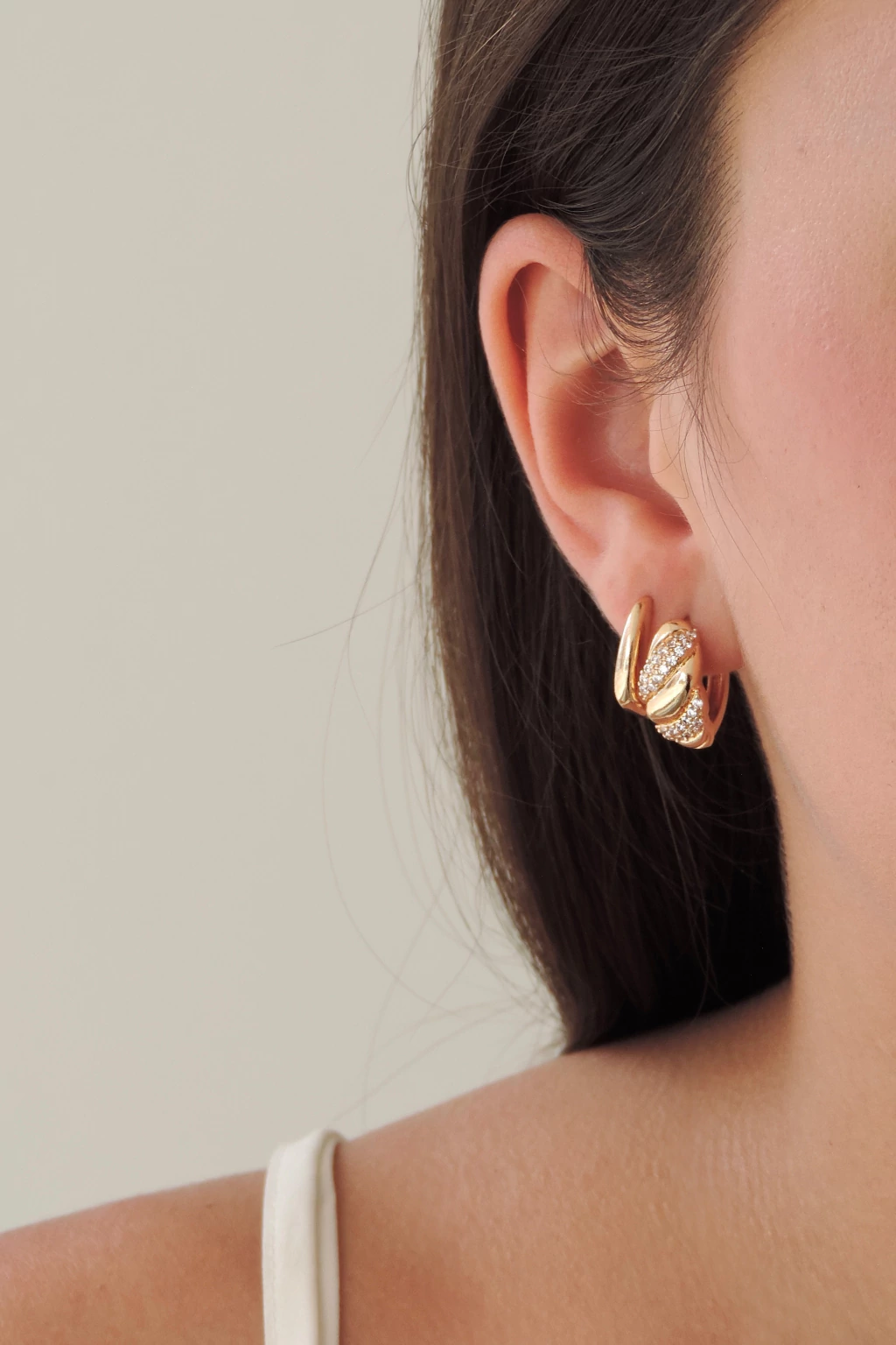 Cravejado: Sim, com zircônias (croissant e redonda)